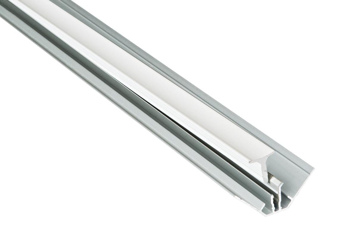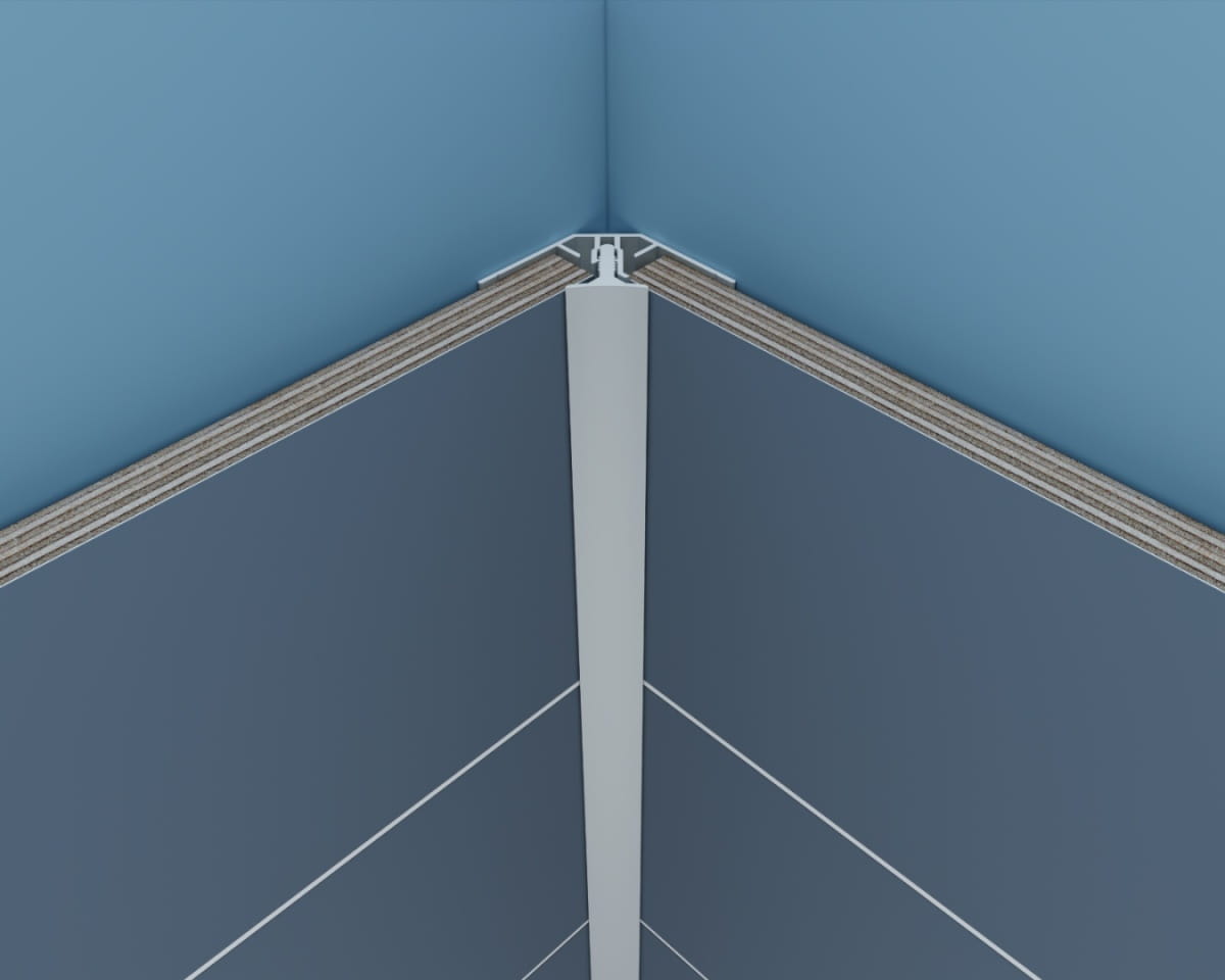 Perfekcyjnie wykończ narożniki wewnętrzne z dwuczęściowym profilem ukrytym Fibo, przeznaczonym do naroży pomieszczeń o kącie 90 stopni. Po montażu ten profil będzie widoczny.