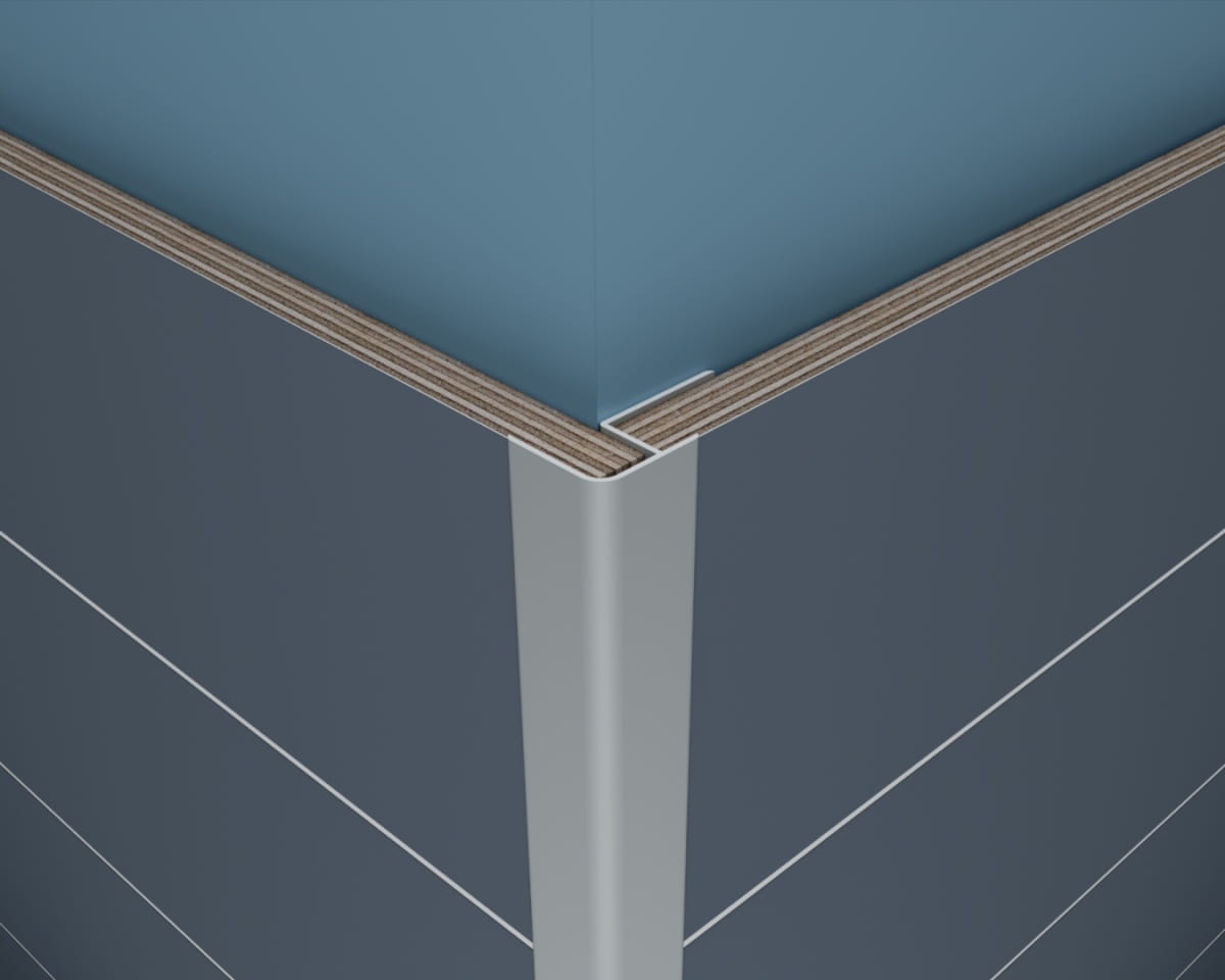 Perfekcyjnie wykończ narożniki zewnętrzne z profilem Fibo, przeznaczonym do naroży w pomieszczeniach o kącie 90 stopni. Po montażu profil będzie widoczny.